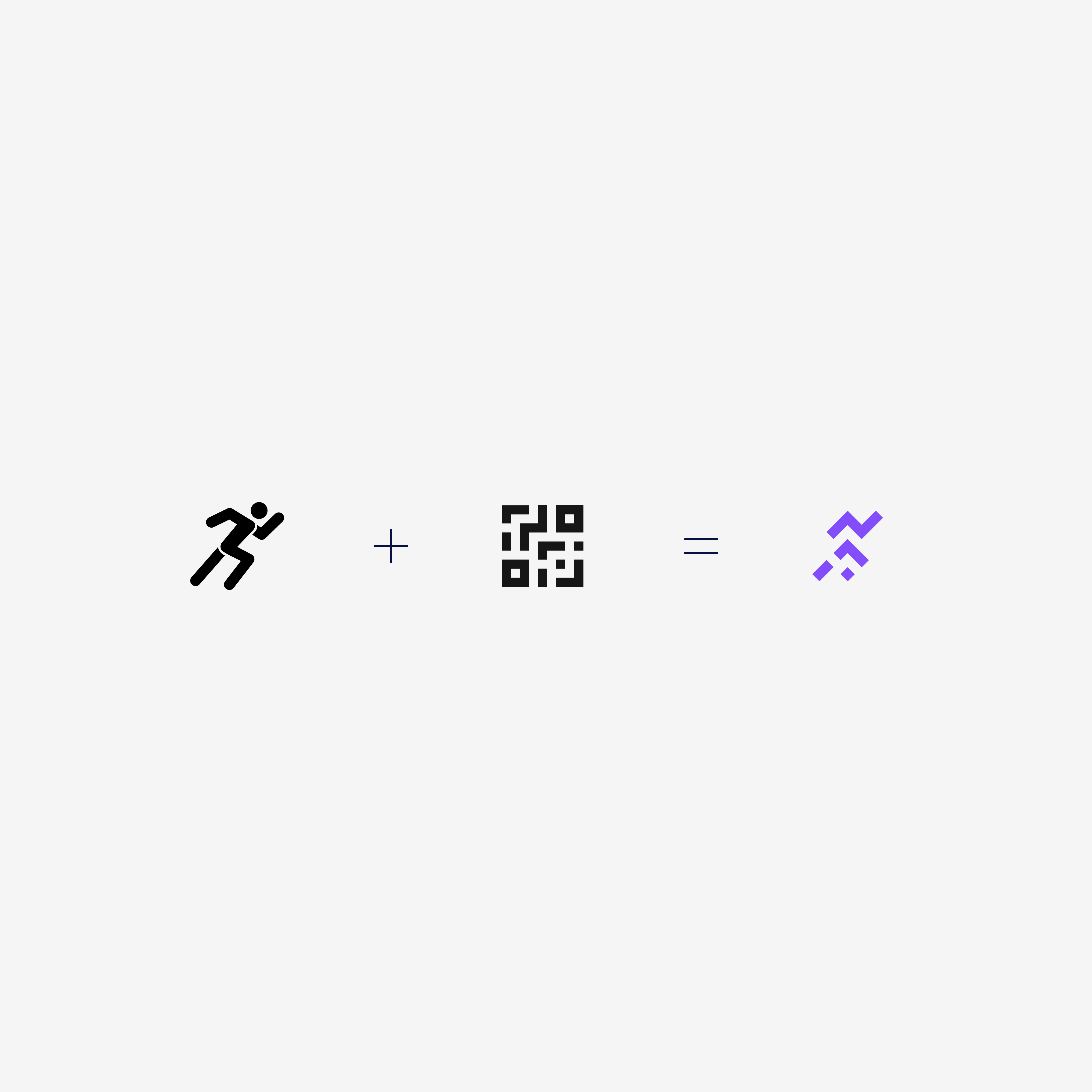 The mark fuses the motion of a running figure with the structure of a QR code, expressing the intersection of human movement and digital intelligence.